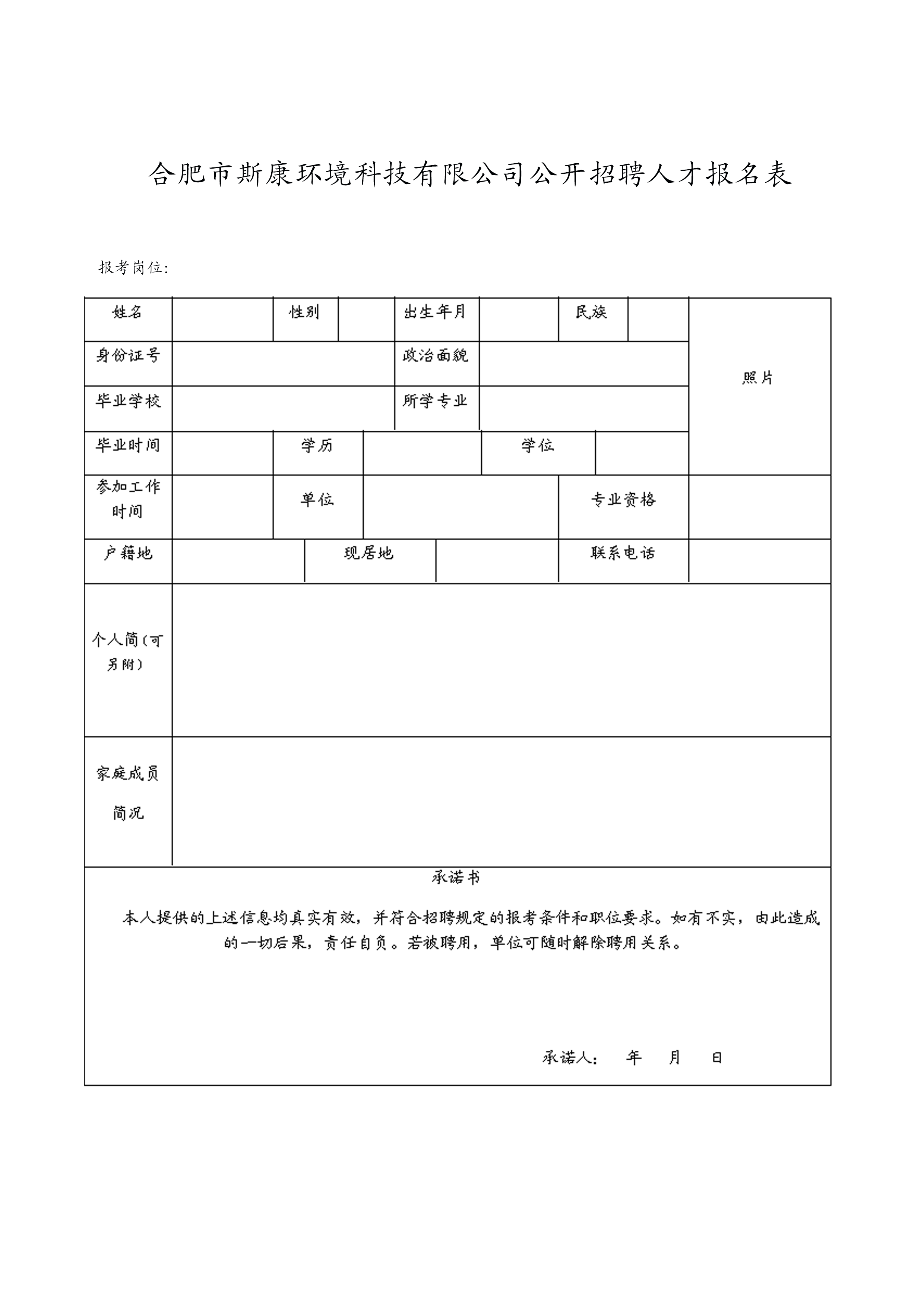 附件下載:合肥市斯康環(huán)境科技有限公司公開招聘人才報名表.doc