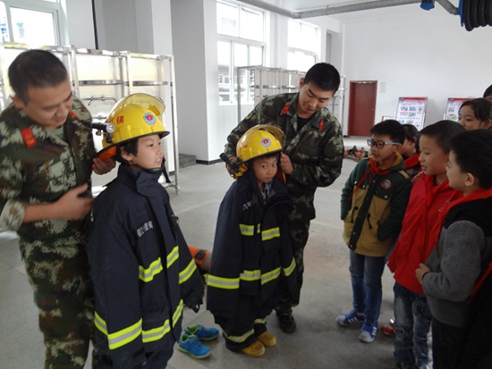 結(jié)束后邀請學(xué)生參觀消防隊(duì),觀看了解消防器材,并親自穿上消防服感受消防官兵的辛苦,學(xué)生得到一次教育。
