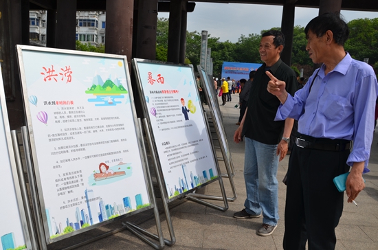 居民正在觀看防災(zāi)減災(zāi)宣傳展板