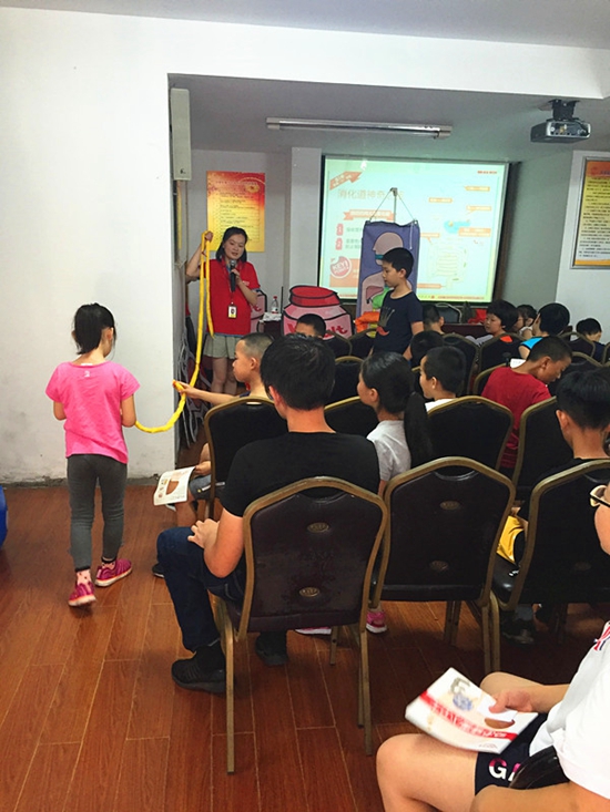 腸道究竟包含著什么樣的秘密,“我們吃的食物,從進(jìn)入口腔到消化吸收,需要24-72個(gè)小時(shí),走完一條長(zhǎng)約9米的旅程,腸道猶如一部精密的機(jī)器,將食物里的營(yíng)養(yǎng)充分吸收,轉(zhuǎn)化為對(duì)人體有益的物質(zhì)。”活動(dòng)現(xiàn)場(chǎng),營(yíng)養(yǎng)師王越用生動(dòng)的事例講解了腸道小常識(shí),讓孩子們認(rèn)識(shí)和了解腸道疾病,從而通過(guò)均衡的營(yíng)養(yǎng)配比和良好的飲食習(xí)慣來(lái)預(yù)防胃腸道疾病。