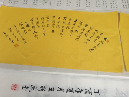 10月23日,一群書法愛(ài)好者來(lái)到龍虎塘街道社區(qū)教育中心,舉行了一場(chǎng)丹青筆墨會(huì)。他們紛紛帶來(lái)了自己新近的書法作品,以墨會(huì)友,相互交流,相互學(xué)習(xí)。
