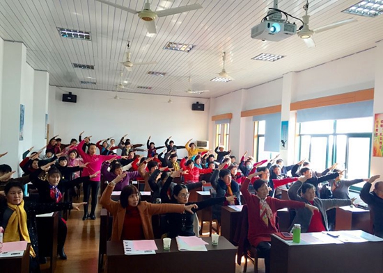 為貫徹社區(qū)教育“為民、惠民、利民、樂民”的根本宗旨,實現(xiàn)縣市級社區(qū)學院與鄉(xiāng)鎮(zhèn)級社區(qū)教育中心教育資源的融通共享,并進一步提升社區(qū)教育的服務功能,豐富全市各鄉(xiāng)鎮(zhèn)社區(qū)居民的業(yè)余文體生活,余姚市社區(qū)學院在2016年成功舉辦第一次送經(jīng)絡健身操下鄉(xiāng)系列活動。今年10月至12月期間繼續(xù)開展了2017送經(jīng)絡健身操下鄉(xiāng)公益講座系列活動。此次送教的經(jīng)絡健身操包括:經(jīng)絡手指操、經(jīng)絡拍手操和疏經(jīng)活絡操。由于動作簡單、易學,而健身效果又十分顯著,一經(jīng)推出就收到了15個鄉(xiāng)鎮(zhèn)成校的自主報名,培訓人數(shù)進一步突破去年,創(chuàng)下694人的新高。培訓的學員極為廣泛,涵蓋了鄉(xiāng)村留守老人、社區(qū)和村落的文體愛好者、村干部、退休教師等對養(yǎng)生、健身有需要的人群,年齡跨度從26歲到85歲。學員們普遍對這種送到“家門口”的培訓反響良好。在講師團老師生動詳細的教學ppt演示及手把手現(xiàn)場教學的引領(lǐng)下,教學現(xiàn)場氣氛愉快而活躍。培訓結(jié)束后,老師們還為各個鄉(xiāng)鎮(zhèn)的學員們創(chuàng)建了微信群,并把一些教學課件與跳操的教學視頻發(fā)到群上與學員們共享,以便進一步鞏固教學效果,方便老師與學員及學員與學員間的交流學習,從而讓今年送教的這套經(jīng)絡健身操更快、更好地向鄉(xiāng)鎮(zhèn)一級的不同年齡層次的群眾推廣。