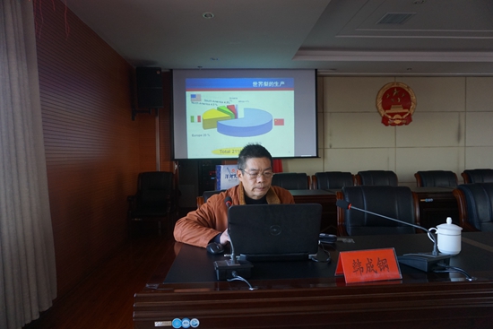 培訓(xùn)班上,韓成鋼同志利用多媒體、圖片、視頻資料相結(jié)合的形式,針對我鎮(zhèn)環(huán)境特點,結(jié)合種植戶在實際生產(chǎn)中遇到的難題,從育苗(無病毒苗木培育、容器育苗)、建園(園地規(guī)劃設(shè)計、苗木種植)、土肥水管理、樹體管理(整形修剪)、花果管理(?;ū9c疏花疏果、果實采收)等方面詳細分析了果樹栽培需要注意的問題,介紹了各種果樹病蟲害癥狀、防治方法和農(nóng)藥的選擇。他還聯(lián)系我市果樹種植現(xiàn)狀、果品經(jīng)營形勢,介紹了國際、國內(nèi)果品發(fā)展趨勢,梨、桃、葡萄等新技術(shù)新品種、相關(guān)操作規(guī)程及技術(shù)標(biāo)準(zhǔn)。他認(rèn)為,要按照國家有關(guān)梨標(biāo)準(zhǔn)建設(shè)形成能夠?qū)崿F(xiàn)生產(chǎn)標(biāo)準(zhǔn)化、管理集約化、產(chǎn)品優(yōu)質(zhì)化、經(jīng)營產(chǎn)業(yè)化、銷售品牌化、效益最大化的果園,提升新技術(shù)、新品種在我鎮(zhèn)林果業(yè)中的應(yīng)用,進一步推動農(nóng)業(yè)種植布局調(diào)整。