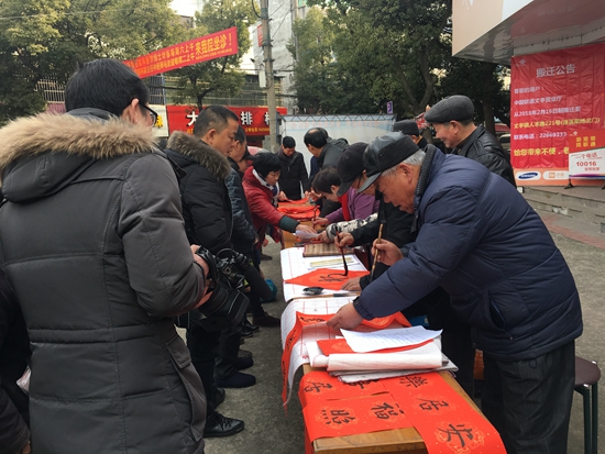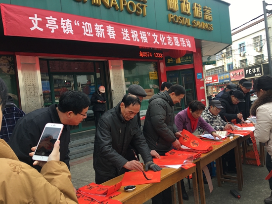 浙江:余姚市丈亭社區(qū)教育中心、文化站共同組織寫(xiě)春聯(lián)送祝?;顒?dòng)