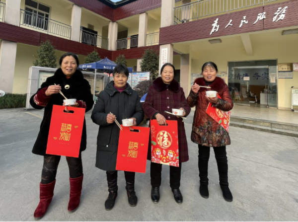 熱情的志愿者們?yōu)榍皝?lái)參加活動(dòng)的村民一一送上了一碗碗熱氣騰騰的湯圓、水餃。大家吃著熱騰騰的食物,喝著甜甜的湯水,臉上掛滿了開(kāi)心的笑容,現(xiàn)場(chǎng)氣氛溫馨而融洽。