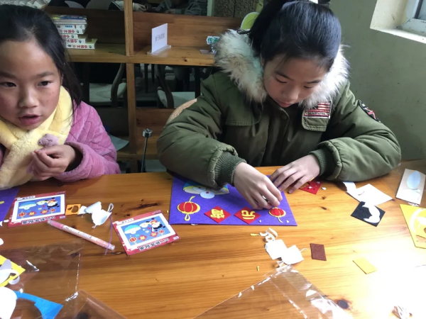 隨后,志愿者為小朋友們分發(fā)了元宵“快樂DIY”材料包,并向小朋友們講解了手工制作的注意事項與制作方法。在制作過程中,小朋友們認真用貼紙在底板上貼畫,在小朋友們的巧手下,一幅幅“元宵快樂”、“年年有余”的作品展示在大家面前。