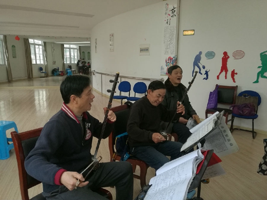 為了豐富老年人的生活、讓他們能夠更加方便、規(guī)范的學(xué)習(xí)黃梅戲,社區(qū)還聘請了原蕪湖市藝術(shù)劇院的副院長劉國民為大家教學(xué)。孫群華介紹道:“我們唱的這些曲子都是劉老師挑選的,還給我們拉二胡伴奏,老師又有文化又有修養(yǎng),拉二胡還拉得特別好。”