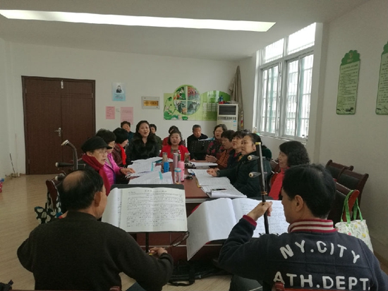 黃梅戲,是中國五大戲曲劇種之一。唱腔淳樸流暢,以明快抒情見長,具有豐富的表現(xiàn)力。表演質(zhì)樸細(xì)致,以真實活潑著稱。成為演繹、傳播中國傳統(tǒng)文化的重要手段,也受到很多普通老百姓的喜愛。在廬陽區(qū)雙崗街道的萬小店社區(qū)就有這樣一個由社區(qū)居民組成的黃梅戲劇社,每個周一和周六的下午,一群社區(qū)老年人聚在一起學(xué)唱黃梅戲。吹拉彈唱,唱練坐打,悠揚(yáng)婉轉(zhuǎn)的曲調(diào)為午后的社區(qū)增添了幾分活力。