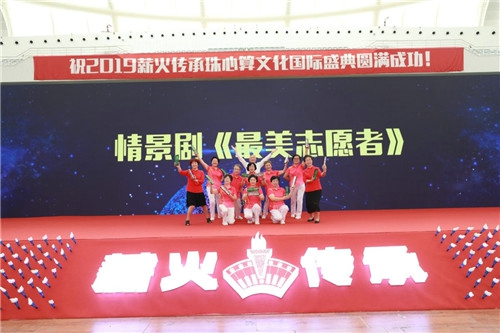 華涇鎮(zhèn)老年健腦珠心算學(xué)習(xí)團(tuán)隊(duì)也應(yīng)邀參加了此次盛典。盛典上,來(lái)自學(xué)習(xí)團(tuán)隊(duì)的成員代表們表演了情景劇《最美志愿者》,講述了十年間團(tuán)隊(duì)在開(kāi)發(fā)、建設(shè)、推廣、完善老年珠心算課程的酸甜苦辣與感人事跡。舞臺(tái)上,成員代表們時(shí)而深情講述,時(shí)而跳起韻律十足的算盤(pán)舞,時(shí)而與臺(tái)下觀眾玩起珠算游戲,活潑生動(dòng)的演出贏得了觀眾們的陣陣喝彩。