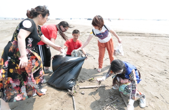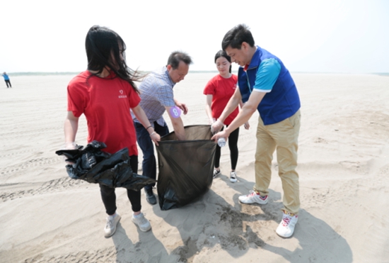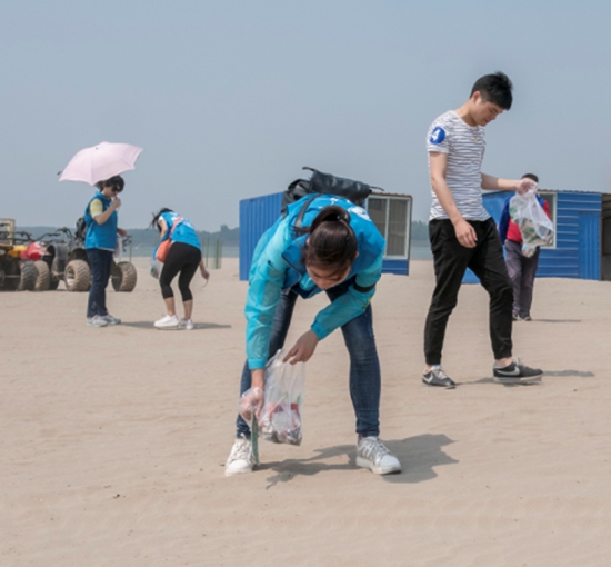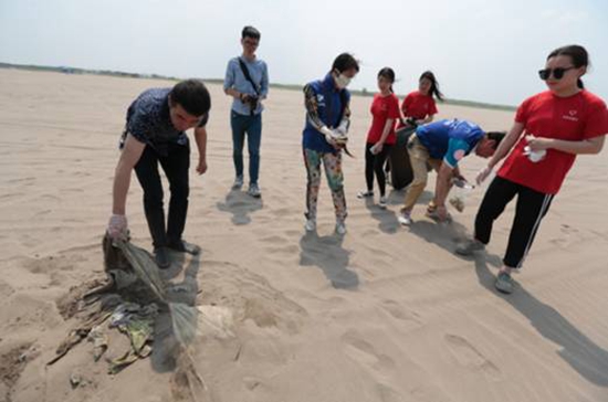離開福利院后,師生志愿者們一行驅(qū)車來到君山銀沙灘開展關(guān)愛自然——保護(hù)生態(tài)自然環(huán)境清潔沙灘活動。烈日下,大風(fēng)卷起的沙塵,絲毫沒有讓志愿者們退縮。有的單獨(dú)行動,有的分工協(xié)作,在長達(dá)1個多小時里的清潔行動中,志愿者們在主沙灘上收集了滿滿的六大袋垃圾。