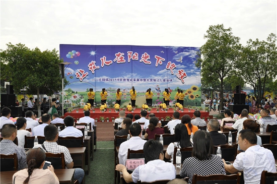 培訓(xùn)會分兩個階段進(jìn)行。第一階段是觀摩大塘鎮(zhèn)社區(qū)教育成果和社區(qū)教育關(guān)愛留守兒童特色項目成效?;顒油ㄟ^文藝節(jié)目表演、關(guān)愛留守兒童志愿者服務(wù)隊授旗、愛心企業(yè)(人士)捐贈、留守兒童心愿禮物認(rèn)領(lǐng)等形式展示了大塘社區(qū)教育充分整合區(qū)域資源,高度促成了家校社融合。