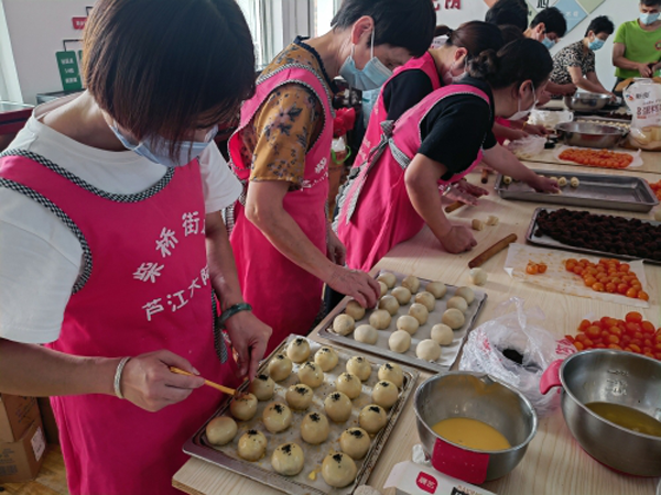 剛開(kāi)始制作月餅時(shí),不少人表示之前沒(méi)有做過(guò),擔(dān)心自己跟不上,在蘆江美廚娘胡蘇群老師的耐心指導(dǎo)和鼓勵(lì)下,每一位參與活動(dòng)的骨干隊(duì)員都仔細(xì)的學(xué)習(xí),一步步跟著老師學(xué)搟面皮、包餡、包月餅、整形、烘烤,大家一邊學(xué)一邊交流,基本上能制作出合格的月餅成品。