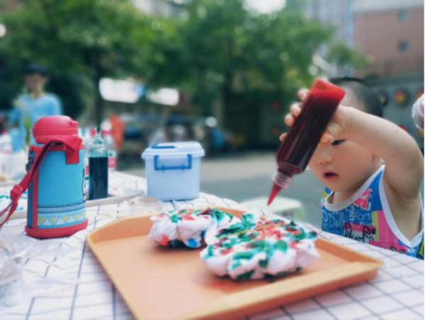 2021年7月19日,夏令營活動第一節(jié)——“邂逅·扎染”親子手工坊順利舉行。本次夏令營活動內(nèi)容都是根據(jù)小朋友提的需求和建議反復商議討論決定的,一大早,家長和孩子都幫著社工阿姨布置場地、擺放物品?;顒娱_始前,社工先向大家講述了扎染的歷史起源、文化發(fā)展及扎染的工藝方法,并向大家展示了很多精美的扎染藝術(shù)品。參與活動的親子家庭在社工的講述中認識扎染、探尋扎染、感受扎染?,F(xiàn)場居民無不贊嘆扎染的獨特韻味和沉淀之美。最后通過視頻觀看+現(xiàn)場教學+實踐操作三大步驟,每一組參加的家庭都完成了美麗的扎染親子衫作品。