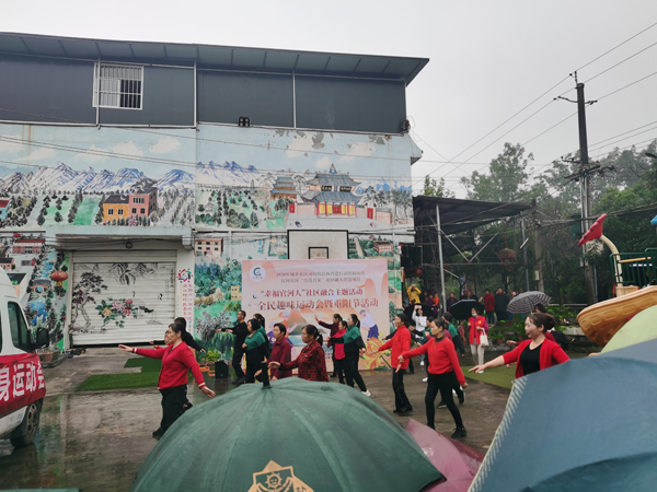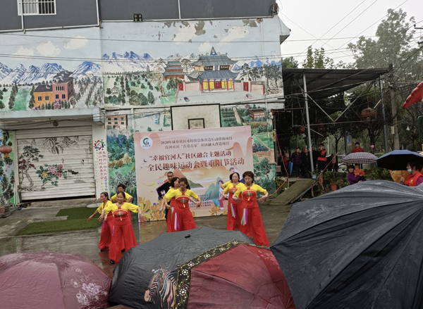 天空下著蒙蒙細(xì)雨,但是志愿者和參與活動(dòng)居民的熱情不減。在心家園社工的精彩開場(chǎng)后,助人為樂(lè)服務(wù)隊(duì)的吳朝秀阿姨首先為大家獻(xiàn)唱一首《大中國(guó)》,拉開了活動(dòng)序幕;伴隨著優(yōu)美的音樂(lè),由助人為樂(lè)服務(wù)隊(duì)的張阿姨、鄒阿姨分別帶領(lǐng)的舞蹈隊(duì)為居民們獻(xiàn)上了精心排練的廣場(chǎng)舞節(jié)目;李學(xué)芳阿姨為居民帶來(lái)的是她的拿手絕活——獨(dú)舞《回娘家》,吳阿姨慷慨激昂的歌聲和志愿者們動(dòng)感十足、激情四射的舞蹈引來(lái)觀眾的陣陣喝彩和熱烈掌聲。
