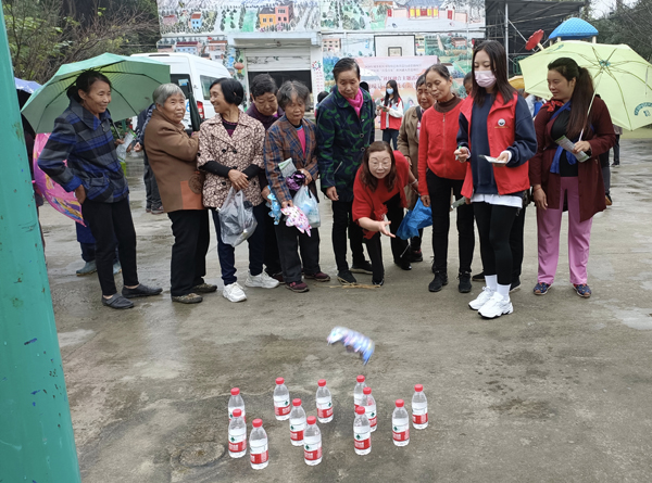 接下來(lái)全民趣味運(yùn)動(dòng)會(huì)正式開始,本次運(yùn)動(dòng)會(huì)分為垃圾分類投球、擲飛盤、踢毽子、跳繩四個(gè)項(xiàng)目進(jìn)行。在社工的組織和高校志愿者和引導(dǎo)下,各運(yùn)動(dòng)項(xiàng)目分場(chǎng)地依次有序進(jìn)行。居民每參與體驗(yàn)一個(gè)項(xiàng)目,根據(jù)參與者的完成情況可獲得1—2分,考慮到不影響居民的參與積極性,每個(gè)項(xiàng)目的過(guò)關(guān)難度都不大,重要的是居民的參與。我們也呼吁“愛成都 迎大運(yùn)”的口號(hào),引導(dǎo)居民通過(guò)鍛煉提升身體素質(zhì),用更好的精神狀態(tài)迎接大運(yùn)會(huì),做好東道主。經(jīng)過(guò)一個(gè)多小時(shí)的熱烈參與,活動(dòng)在兌獎(jiǎng)處的歡聲笑語(yǔ)中落下了帷幕。