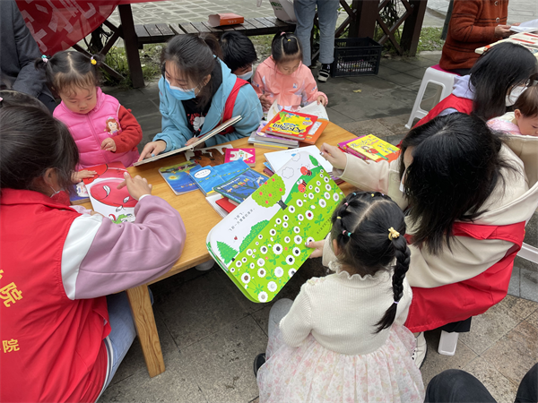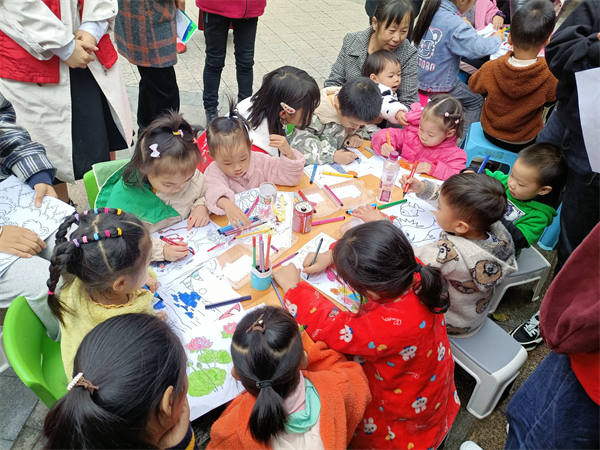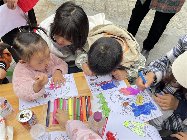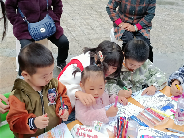 在公益閱讀區(qū),居民們在志愿者的協(xié)助下,分別選取了文學、養(yǎng)生、生活小竅門、歷史故事等書籍閱讀。選好書籍后,大家坐在座位上津津有味地閱讀,有居民手捧自己喜歡的《長征回憶錄》《健康全家?!返葧J真閱讀;有剛剛上小學的小朋友,拿著《三字經(jīng)》《南瓜湯》《是大是小》等繪本書籍,用手指順著每一個字仔細查看;有的孩子和家長依偎在一起,一同翻看喜愛的故事畫冊,共同享受幸福的閱讀時光。在兒童手工區(qū),繪畫過程中,孩子們和家長們興致昂揚,認真地涂涂畫畫。在家長們與孩子們的共同努力下,栩栩如生的圖案躍然紙上。瞧,參與繪畫的小朋友們將一幅幅漂亮的風景圖披上了漂亮的外衣,讓一整幅畫活靈活現(xiàn),還有的小朋友剛剛涂完一只小兔子,就嚷嚷著還要再涂一幅……社區(qū)居民蘇阿姨說:“你們這些戶外活動好啊,我孫女上周也過來這邊畫畫,很喜歡涂鴉”???!象棋區(qū),只見兩個小朋友凝神屏氣,沉著冷靜,氣氛熱烈而緊張,在棋盤上布兵擺陣,兵來卒往,炮飛馬跳展開激烈角逐,小棋手認真謹慎,生怕“一著不慎滿盤皆輸”,在“楚河漢界”上演精彩廝殺。