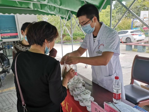 活動(dòng)現(xiàn)場(chǎng),第五人民醫(yī)院藥劑科主任、中藥師曾莉,中醫(yī)科主任王燕,中醫(yī)肛腸科主任鄧臺(tái)燕,康復(fù)醫(yī)學(xué)科主任朱德良等醫(yī)藥專家及科室骨干醫(yī)護(hù)人員熱誠(chéng)地為舒家渡社區(qū)當(dāng)?shù)鼐用袢罕娺M(jìn)行免費(fèi)義診。專家們認(rèn)真搭脈、仔細(xì)辨證、慎重處方,對(duì)部分有需要的患者進(jìn)行免費(fèi)針灸、康復(fù)理療治療。中藥師向咨詢者耐心講解中藥煎制和服用的相關(guān)知識(shí)以及注意事項(xiàng),現(xiàn)場(chǎng)贈(zèng)送省中管局預(yù)防新冠處方中藥100余副,秋冬泡腳中藥50余副。前來(lái)就診和咨詢的社區(qū)居民絡(luò)繹不絕,就診者與醫(yī)師們愉快交流,默契配合,現(xiàn)場(chǎng)氣氛溫馨、和悅,整個(gè)現(xiàn)場(chǎng)共接診居民群眾100余人次。