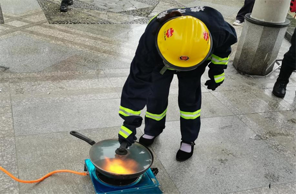 活動(dòng)中,除了聽(tīng)老師講解理論知識(shí),居民們還通過(guò)實(shí)操環(huán)節(jié),積極參與體驗(yàn)了使用鍋蓋、滅火毯和油鍋滅火瓶等多種方式的油鍋初起火撲滅。