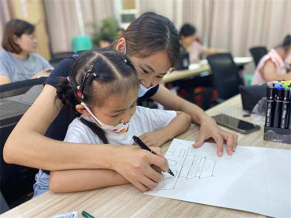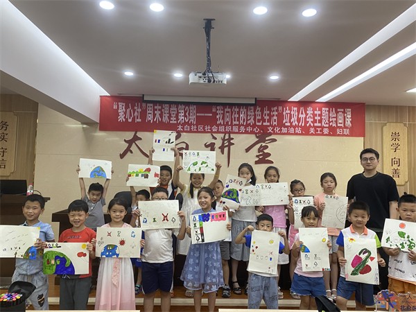 2022年暑假期間,每到周六,太白社區(qū)二樓文化禮堂時不時有兒童的歡聲笑語傳出,一堂堂別開生面的繪畫、垃圾分類知識輔導(dǎo)、少兒主持等公益課正在進(jìn)行,志愿者的子女們正聚精會神地跟隨著老師的講解認(rèn)真聽課、動手,度過著不一樣的周末時光。