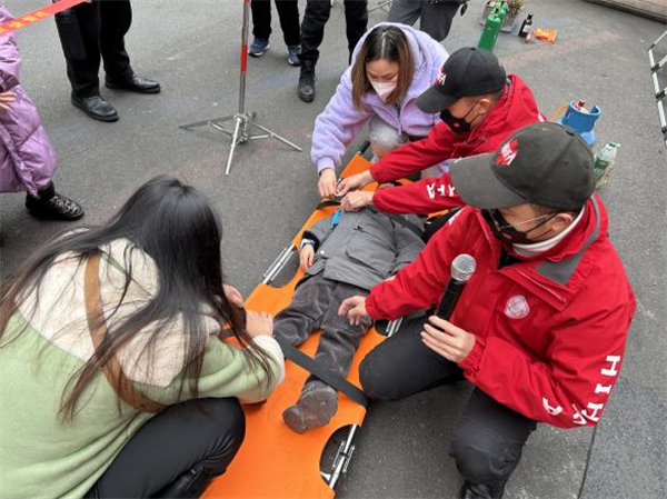 現(xiàn)場還通過模擬火場燒燙傷以及搬運(yùn)轉(zhuǎn)移的急救環(huán)節(jié),讓大家在演練中學(xué)習(xí)火場急救知識(shí)。同時(shí)還通過廚房油鍋起火和固體火災(zāi)的演練環(huán)節(jié),讓我們的商家與居民們過足了實(shí)操的“癮”。