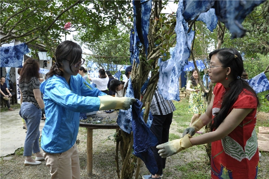 研修班學(xué)員到甘溪鎮(zhèn)明月村陶藝·文創(chuàng)·新鄉(xiāng)村游學(xué)體驗(yàn)基地,參觀了甘溪鎮(zhèn)社區(qū)教育學(xué)校、明月村社區(qū)教育工作站、明月書館、明月篆刻、明月陶藝、自助式鄉(xiāng)村創(chuàng)客服務(wù)站等精品點(diǎn)位,并到明月嵐染工坊,在老師指導(dǎo)下體驗(yàn)了草木染的全部過程。通過實(shí)地考察和體驗(yàn),研修班學(xué)員充分肯定了蒲江社區(qū)教育在統(tǒng)籌協(xié)調(diào)、資源整合,聚力施教、服務(wù)三農(nóng),科研引領(lǐng)、深化內(nèi)涵,項(xiàng)目實(shí)驗(yàn)、引領(lǐng)發(fā)展等方面的做法。一致認(rèn)為在新農(nóng)村建設(shè)過程中,蒲江社區(qū)教育為市民搭建多元學(xué)習(xí)平臺(tái),提升了村民文化素養(yǎng)和綜合素質(zhì),發(fā)揮了社區(qū)教育助推社區(qū)治理的作用。