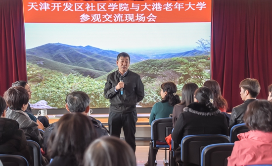 3月2日下午,天津開(kāi)發(fā)區(qū)社區(qū)學(xué)院教師和骨干學(xué)員七十多人聚集一堂,參加新學(xué)年開(kāi)學(xué)動(dòng)員會(huì)暨工作培訓(xùn)會(huì)。會(huì)上兩名優(yōu)秀的學(xué)員班長(zhǎng)分享了自己學(xué)習(xí)取得的成績(jī)和參與班級(jí)管理的經(jīng)驗(yàn),表達(dá)了廣大學(xué)員熱愛(ài)學(xué)習(xí)的熱情。兩位人氣火爆的骨干教師分享了在社區(qū)學(xué)院的教學(xué)經(jīng)驗(yàn)以及他們對(duì)終身教育、老年教育的認(rèn)識(shí),表達(dá)了要以社區(qū)學(xué)院為平臺(tái)努力做好文化知識(shí)傳播工作的意愿。會(huì)議還對(duì)上一年的教學(xué)管理工作進(jìn)行了分析講評(píng)。院長(zhǎng)王柏秋以《緊跟濱海新區(qū)發(fā)展腳步,為“幸福泰達(dá)”而不懈努力》為題做了開(kāi)學(xué)動(dòng)員會(huì)暨新學(xué)年首次公開(kāi)黨課。會(huì)前全體與會(huì)人員還集體赴大港老年大學(xué)參觀交流,聽(tīng)取了大港老年大學(xué)鄭伯杰校長(zhǎng)的辦學(xué)經(jīng)驗(yàn)介紹。