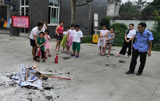 培訓(xùn)活動通過投影儀播放典型火災(zāi)案例的新聞報道及相關(guān)視頻,用血淋淋的事實說話,使在場的小朋友及家長們感同身受,增強了消防安全意識。隨后,社區(qū)教育志愿者黃老師循序漸進、由淺及深地講解了消防安全的重要性,火災(zāi)的種類和起因,如何有效預(yù)防火災(zāi),在火災(zāi)來臨時如何最大限度地保護自我及他人人身、財產(chǎn)安全,怎樣正確有效地撥打報警電話等相關(guān)消防常識,不僅現(xiàn)場演示了滅火器的正確使用方法,還鼓勵并手把手地教會小朋友們正確地使用滅火器,與在場的小朋友進行了互動交流,耐心解答小朋友們提出的各種問題。