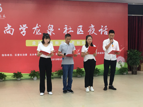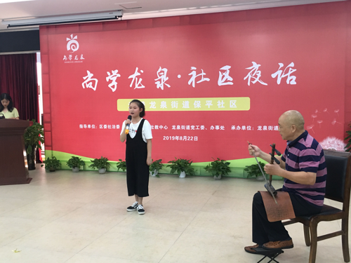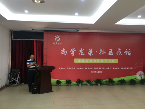 以“社區(qū)夜話”的形式,搭建居民鄰里交流、社區(qū)居民學(xué)習(xí)的平臺,全面提升居民素質(zhì)。近日,龍泉街道保平社區(qū)黨群活動室二樓歡聲笑語,伴隨手語舞《蟲兒飛》的稚嫩童聲,“尚學(xué)龍泉·社區(qū)夜話”——走進龍泉街道保平社區(qū)主題活動拉開了序幕。區(qū)社教中心、社區(qū)“兩委”、社區(qū)黨員干部、議事會成員、自組織隊伍、居民骨干、社會組織、物管公司負責(zé)人、網(wǎng)格員等80多人齊聚一堂,講社區(qū)治理故事,謀社區(qū)發(fā)展大計。