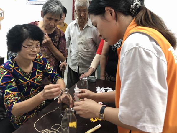 為增強社區(qū)居民綠色環(huán)保意識,樹立“節(jié)約資源,物盡其用”的環(huán)保觀念,7月16日上午,鳳凰鎮(zhèn)恬源社區(qū)在社區(qū)居家養(yǎng)老服務中心開展了“巧手生花,變廢為寶”社區(qū)教育活動。