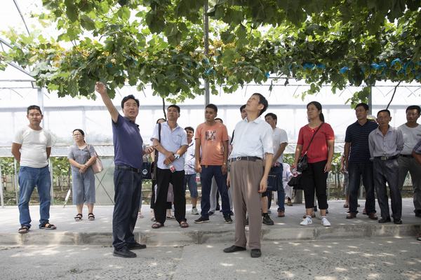 培訓(xùn)班學(xué)員首先來(lái)到了桃文化博物館,在講解員的引導(dǎo)下參觀各個(gè)展廳,了解鳳凰鎮(zhèn)水蜜桃產(chǎn)業(yè)發(fā)展規(guī)模、品種類別,感受博大精深的水蜜桃文化;隨后,全體學(xué)員來(lái)到七彩明珠葡萄園,聽(tīng)取了鳳凰山田心農(nóng)業(yè)專業(yè)合作社理事長(zhǎng)、七彩明珠農(nóng)業(yè)園負(fù)責(zé)人朱金龍的介紹,他分享了葡萄品種、栽培技術(shù)、套袋技巧等情況,并給學(xué)員們展示了利用手機(jī)APP進(jìn)行開(kāi)棚、控溫、噴水等一系列操作的物聯(lián)網(wǎng)系統(tǒng),感受現(xiàn)代智慧農(nóng)業(yè)的先進(jìn);最后學(xué)員們還來(lái)到鳳凰佳園水蜜桃示范基地,聽(tīng)取了基地負(fù)責(zé)人關(guān)于水蜜桃新品種、新技術(shù)、新裝備的介紹,讓大家深受啟發(fā)。