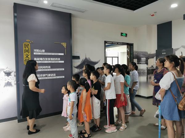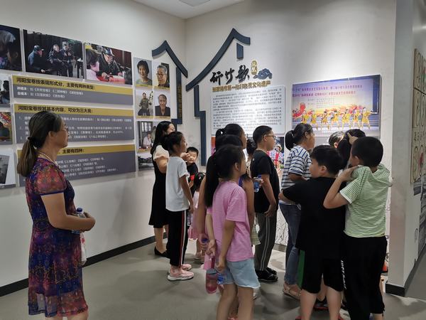 在肖國秋老師的帶領(lǐng)下,孩子們來到了鳳凰鎮(zhèn)非遺展館,孩子們欣喜地看到:展館充分運(yùn)用文字圖片、作品實物等方式,全面介紹鳳凰鎮(zhèn)河陽文化博大精深的國家和市級非遺項目和非遺傳人,河陽山歌、河陽烙畫、謝洪、西施糕……讓戲曲、民間技藝、民俗、美食等非物質(zhì)文化得到更好的傳承。孩子們聽著老師精彩的講解,或駐足觀賞,或相互交流,不禁感慨萬分,原來我們身邊有這么多的寶藏哪!