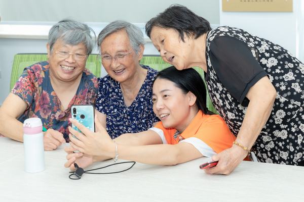活動中,社工老師首先了解學(xué)員們的學(xué)習(xí)需求,因材施教,給大家推薦了當(dāng)今最熱門的抖音、K歌等APP,隨后,老師耐心地教大家如何下載及使用APP。學(xué)員們學(xué)得特別認(rèn)真,很快學(xué)員們嘗試拍攝了第一個視頻,視頻中學(xué)員們臉上洋溢著燦爛的笑容,耀眼美麗。隨后老師又教學(xué)員將視頻分享到學(xué)習(xí)微信群,學(xué)員們看到上傳的視頻,不禁紛紛點贊叫好,現(xiàn)場氣氛熱烈。社工老師隨后給愛唱歌的居民講解了K歌APP,學(xué)習(xí)找伴奏、調(diào)音、保存和分享等,大家學(xué)得興致勃勃。有的學(xué)員現(xiàn)場就唱了一首,伴著音樂,打著節(jié)拍;有的學(xué)員還現(xiàn)學(xué)現(xiàn)賣錄制了視頻,記錄學(xué)習(xí)的美好。