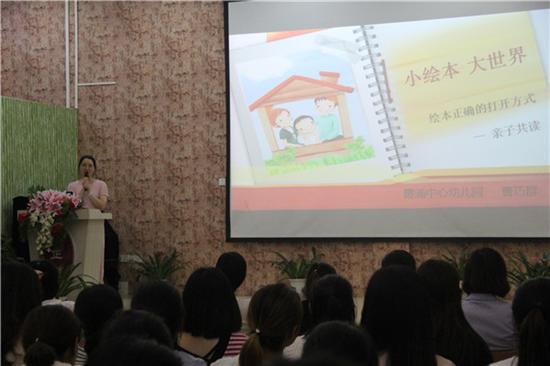 講座中,霞浦幼兒園園長(zhǎng)曹巧群運(yùn)用一個(gè)個(gè)實(shí)例,通過(guò)互動(dòng)交流的方式,向家長(zhǎng)解讀了為什么要給孩子閱讀繪本,閱讀繪本的重要性以及大人怎樣和孩子一起共讀繪本。在講座后,幾位家長(zhǎng)還扮演了一次孩子,跟著主講人一起閱讀,這種體驗(yàn)讓家長(zhǎng)從孩子的視角來(lái)閱讀,讓其更好地了解了孩子的閱讀特點(diǎn)。最后曹巧群還建議:“閱讀中不要給孩子壓力,要保護(hù)孩子的創(chuàng)造力,讓孩子覺(jué)得閱讀是一件有意義的事情?!?/p>