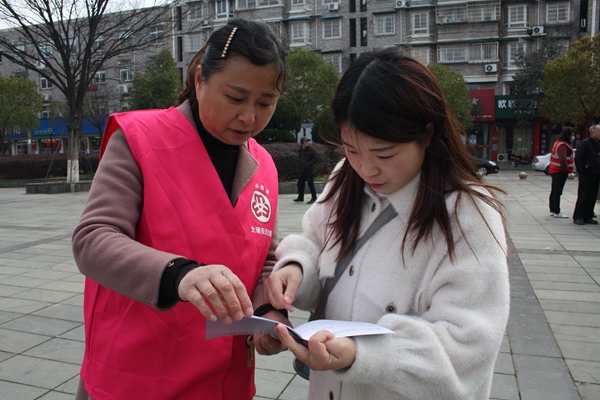 活動(dòng)現(xiàn)場(chǎng),工作人員向居民發(fā)放《婦女權(quán)益保護(hù)法》、《反家庭暴力法》宣傳資料,向廣大婦女群眾講解反家暴相關(guān)法律知識(shí)及遭遇家暴時(shí)的應(yīng)對(duì)方法,號(hào)召每戶(hù)家庭都積極投身到反對(duì)家庭暴力活動(dòng)中,做反對(duì)家庭暴力的執(zhí)行者、宣傳者。