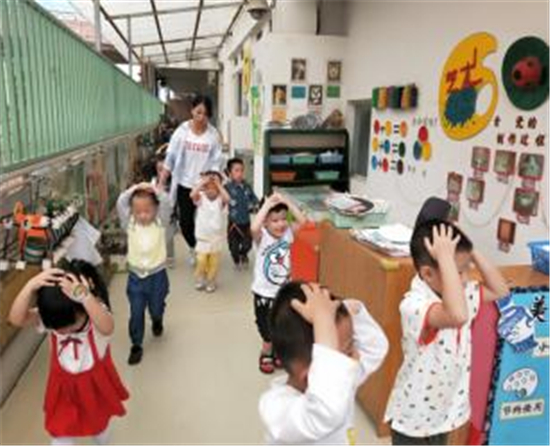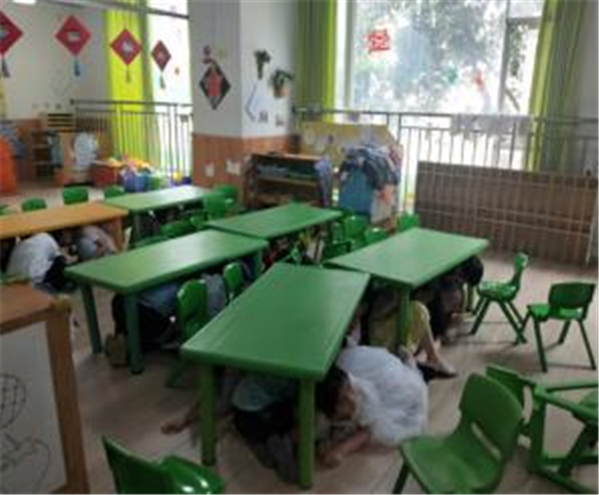 演練現(xiàn)場,來自國際搜救應(yīng)急管理協(xié)會的石頭教練針對幼兒園實際情況,首先對全園教師講解了梗阻急救法、災(zāi)害自救互救、消防安全防范知識,以及地震疏散流程、注意事項,指導(dǎo)幼兒園建立應(yīng)急疏散預(yù)案。隨后防震疏散演練開始,各班老師根據(jù)教練的安排,快速到位,在聽到警報后,立即指揮幼兒緊急避險,指導(dǎo)幼兒雙手護(hù)頭,蹲在課桌下、教室承重墻角落等。最后,幼兒在老師的帶領(lǐng)下,按避震預(yù)案疏散路線轉(zhuǎn)移到室外操場安全地點。