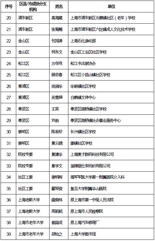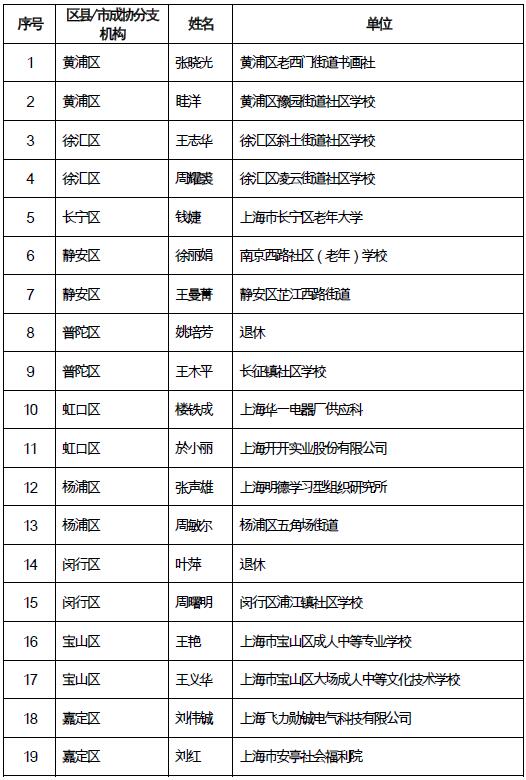 上海市2020年“百姓學(xué)習(xí)之星”名單