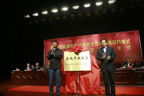 原標(biāo)題:2015年鹽城市全民終身學(xué)習(xí)活動(dòng)周總開幕式暨鹽城開放大學(xué)揭牌儀式舉行