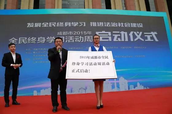 2015年10月30日下午,由青羊區(qū)人民政府、青羊區(qū)教育局承辦的成都市2015年“全民終身學(xué)習(xí)活動周”啟動儀式在四川科技館隆重舉行,中國成人教育協(xié)會、四川省教育廳、成都市教育局、成都市文明辦、成都市民政局、成都市總工會、成都市婦聯(lián)、共青團(tuán)成都市委、成都社區(qū)大學(xué)以及青羊區(qū)教育局等有關(guān)單位的領(lǐng)導(dǎo)、成都市百姓學(xué)習(xí)之星代表、市民代表、社會組織代表、各區(qū)(市)縣教育局、社區(qū)教育學(xué)院代表、社區(qū)教育志愿者代表300余人參與了活動。