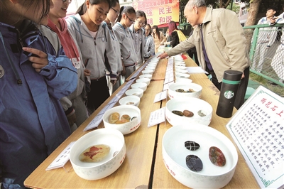 雨花石展吸引了很多人前來觀看