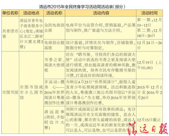 清遠(yuǎn)市2015年全民終身學(xué)習(xí)活動周活動表(部分)