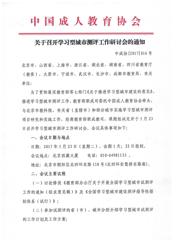 - 關(guān)于召開中國成人教育協(xié)會社區(qū)教育專業(yè)委員會2023年工作會議的通知